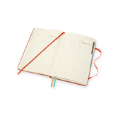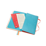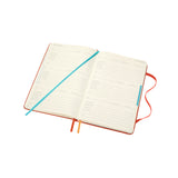 A capa é dura revestida a tecido, tem um novo formato que o torna mais portátil e concebido para guardar itinerários e mapas; 3 fitas marcadoras de cores diferentes e páginas pautadas, lisas e ponteadas. O papel é cor marfim e de 70g/m2.
