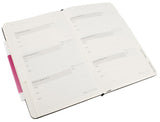 Capa gravada com desenhos. Três fitas marcadoras e uma bolsa interna dupla. Seis secções temáticas para preencher. Seis secções com separadores para personalizar. Dezasseis páginas em branco para apontamentos e várias etiquetas autocolantes.