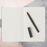 No coração do Smart Writing Set está o Smart Notebook com seu formato clássico Moleskine e páginas cor de marfim , juntamente com o aplicativo Smart Pen and Notes, redesenhado.