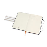 Todos os cadernos desta nova colecção são pautados, com os cantos arredondados e fecham com elástico. O papel é em cor marfim 70g/m2.