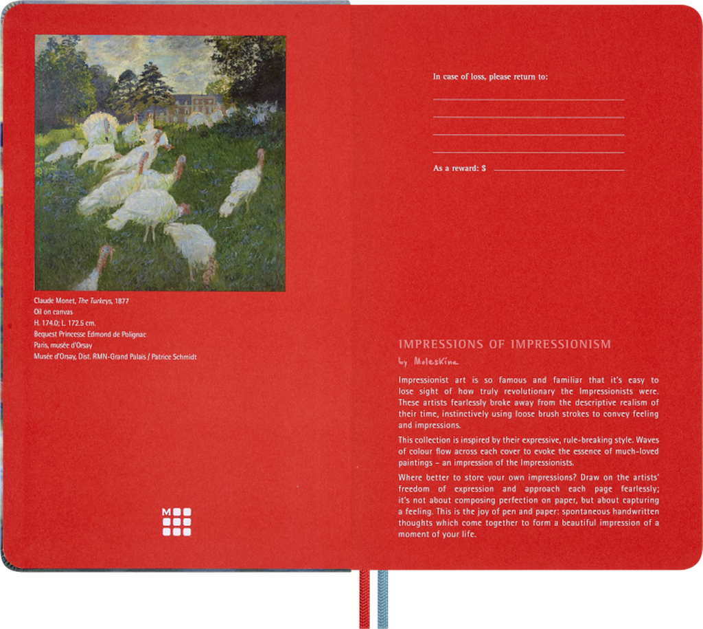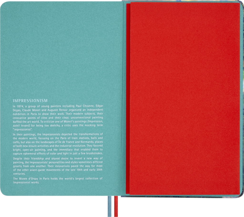 A Coleção Moleskine Impressionism inspira-se nesse espírito audaz e nesse estilo que quebrou todas as regras. Cores fluidas e vibrantes percorrem cada capa, oferecendo uma interpretação contemporânea de obras intemporais — uma impressão dos Impressionistas.