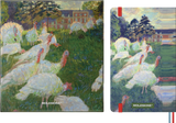 A capa do caderno é uma interpretação vibrante de *Les Dindons*, de Claude Monet, re-interpretada através de cores e texturas fluidas.