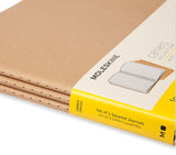 Conjunto de 3 cadernos para todas as ocasiões. Têm 120 páginas - as últimas 16 folhas são destacáveis - capa maleável, cantos arredondados e costura visível na lombada.