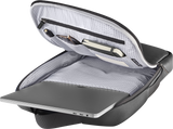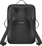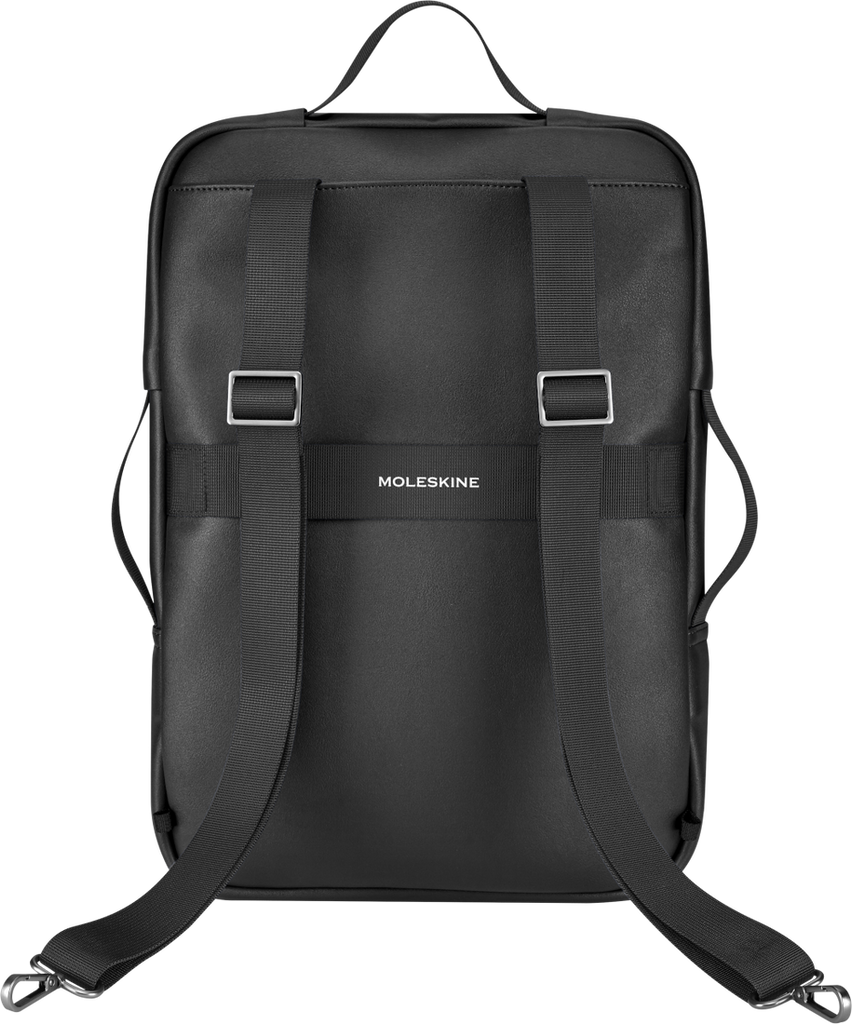 Além das alças de mochila ocultas, possui uma pega deslizante discreta em torno da borda, permitindo-lhe pegá-la tanto na posição horizontal como na vertical.