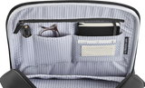 1 bolso seguro com fecho de correr e 1 organizador com suporte para caneta, bolso almofadado para óculos e suporte para cartões de visita