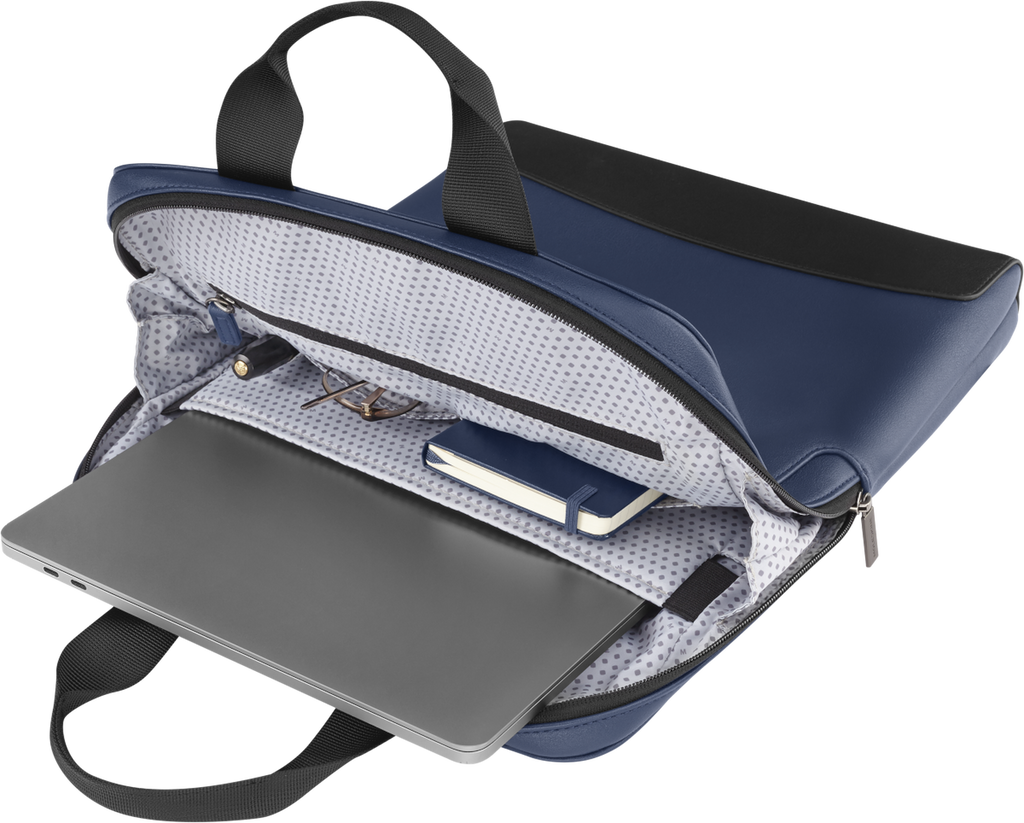 A Mala Vertical, agora atualizada, é uma mala elegante, leve e discretamente sofisticada para transportar o seu conjunto de trabalho móvel. No interior tem um compartimento almofadado para o portátil, um bolso grande com fecho, um bolso pequeno para caderno, um compartimento acolchoado para óculos e um suporte para caneta. Pode ser transportada como mochila ou à mão, com as alças de mochila cuidadosamente guardadas.