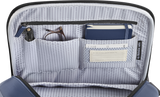 1 bolso seguro com fecho de correr e 1 organizador com suporte para caneta, bolso almofadado para óculos e suporte para cartões de visita