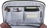 1 bolso seguro com fecho de correr e 1 organizador com suporte para caneta, bolso almofadado para óculos e suporte para cartões de visita