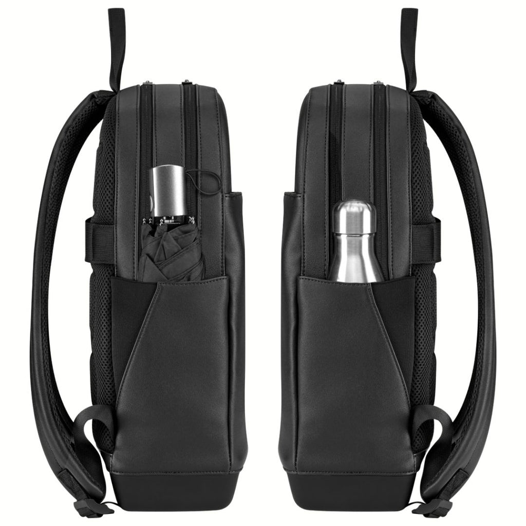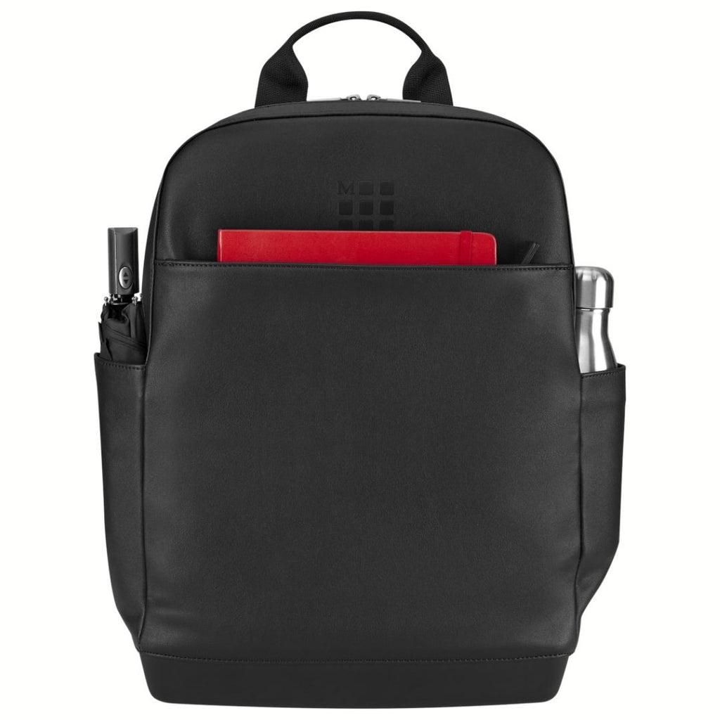 No interior, tem uma grande bolsa com fecho, bolsas para cadernos pequenos, um compartimento acolchoado para óculos e um suporte para caneta. O exterior inclui bolsas laterais fundas e expansíveis para manter os objetos essenciais sempre à mão, bem como uma bolsa frontal com fecho que ajuda a separar e organizar todos os pertences.