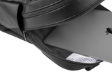2 bolsas laterais para manter os essenciais sempre à mão e com elástico para maior capacidade quando necessário