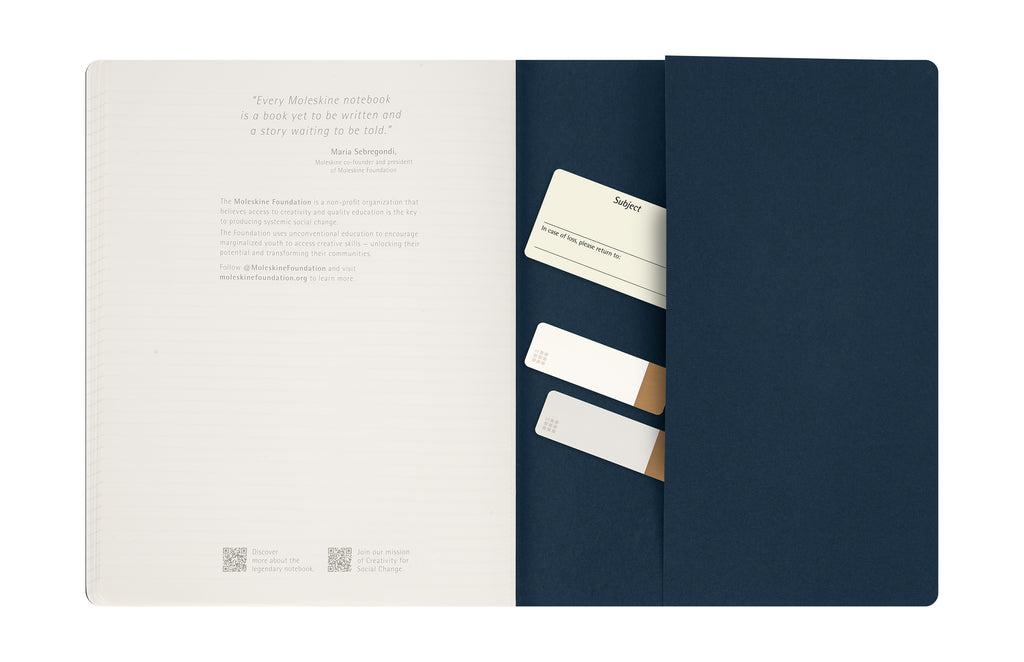 O novo Cahier Student está disponível no tamanho XXL, em pautado e liso, e na cores preto, vermelho, verde mirtilo e agora também em azul indigo.